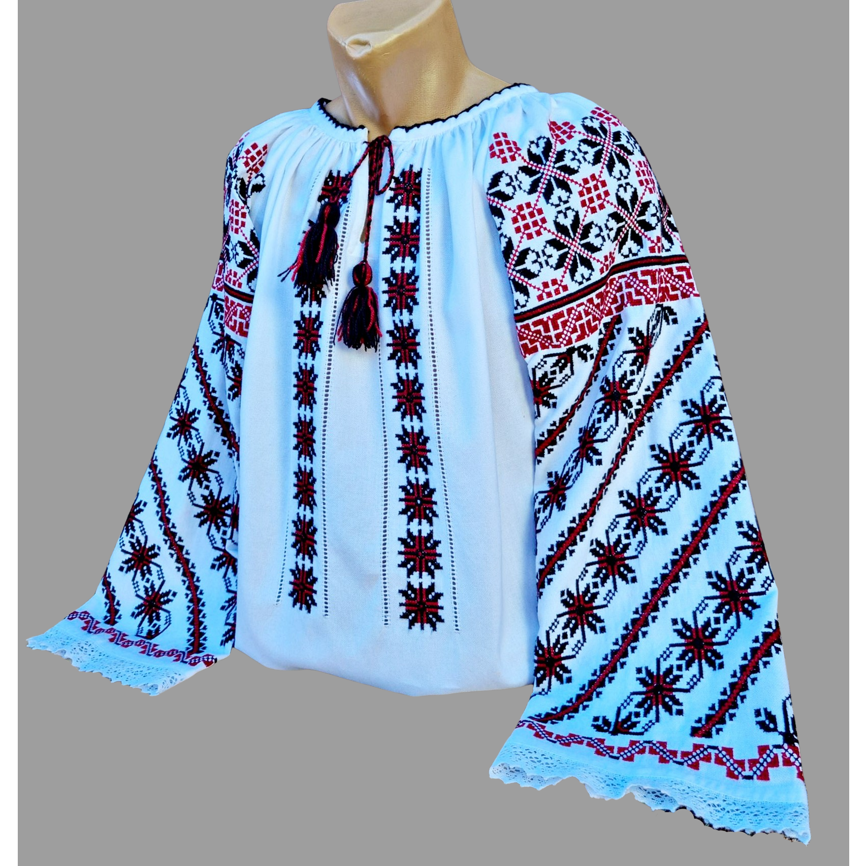 Aceasta ie traditionala este realizata din materiale de cea mai buna calitate si brodata manual cu atentie sporita la detalii.